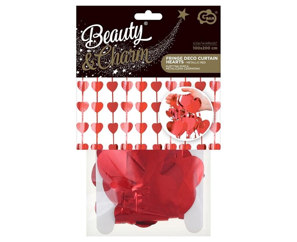 Party závěs metalický červený - srdíčka 100 x 200 cm