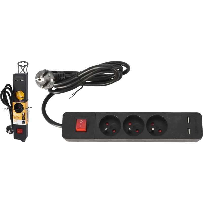 Prodlužovací kabel s vypínačem 1,4 m 3 zásuvky / 2 x USB