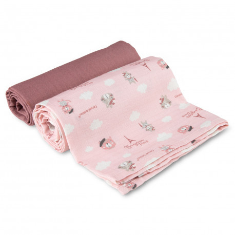 canpol babies Mušelínová plena BONJOUR PARIS 2 ks 70x70 cm růžová