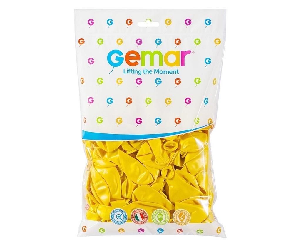 Balony metaliczne Żółte, GM110, 30 cm, 100 szt. Wymiar balonów w calach: 12 Wymiar balonów w centymetrach: ok. 30 cm Ilość sztuk w opakowaniu: 100 Kolor: żółty metaliczny Włoskiego producenta - firmy Gemar. Posiadają odpowiedniej długości końcówkę, więc nie ma problemów z ich wiązaniem.