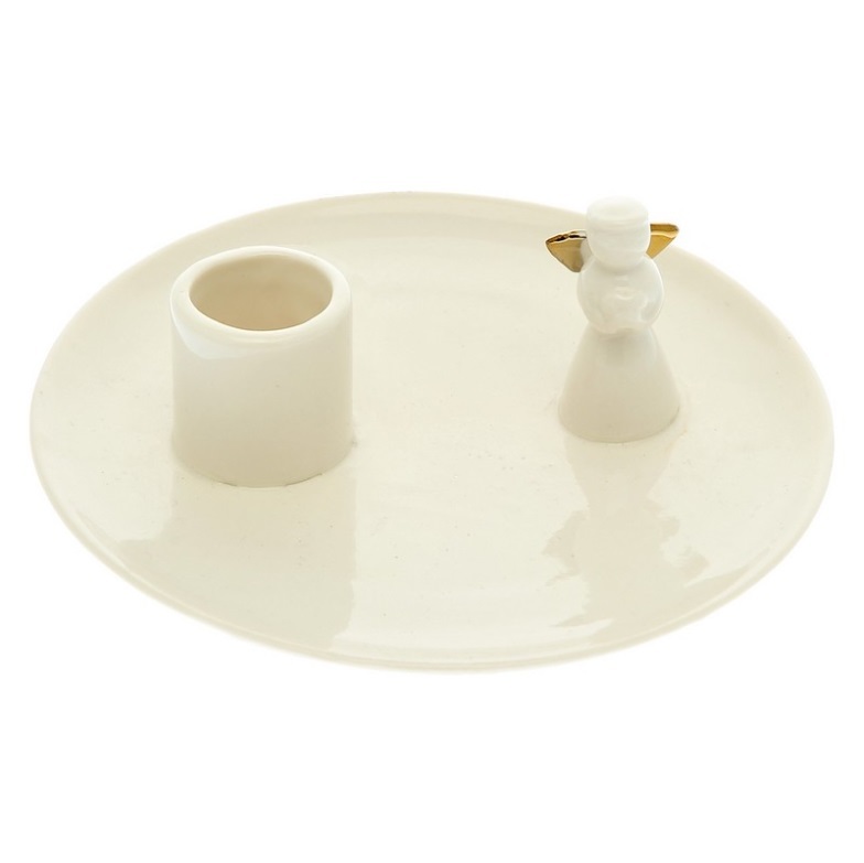 Jednoduchý svícen s andělem na vysokou svíčku, který krásně doplní Váš sváteční stůl nebo konferenční stolek.Provedení v jemných odstínech. Materiál - keramika. Rozměry - průměr 14 cm, výška 1 cm. číst celé