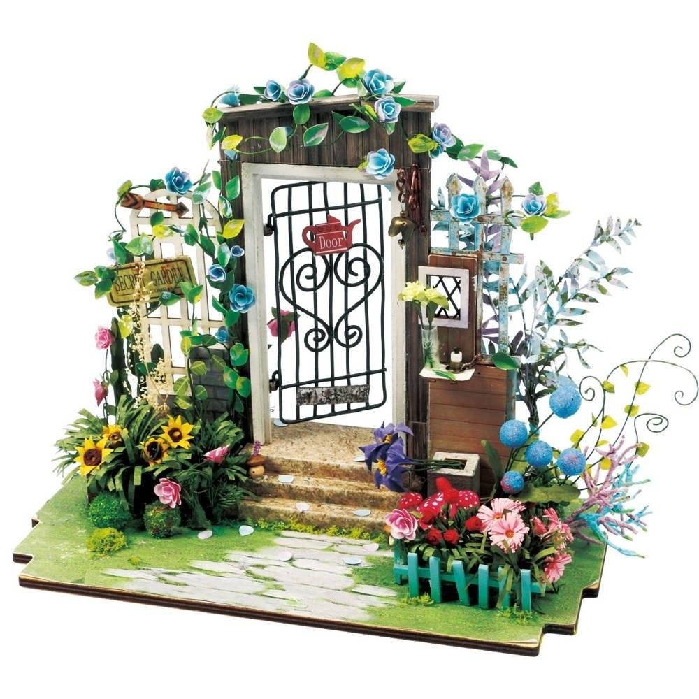 Zestaw umożliwiający złożenie miniaturowej bramy do tajemniczego ogrodu z oświetleniem LED. Do budowy modelu wykorzystano między innymi drewno, papier, drut, tworzywo oraz różne elementy dekoracyjne takie jak: kolorowe ozdoby, cekiny, koraliki, sztuczne kwiaty oraz wiele innych materiałów. Brama posiada również nastrojowe oświetlenie LED, które nadaje całości dodatkowego uroku i wdzięku. Opakowanie oprócz czytelnej, obrazkowej instrukcji zawiera także przezroczysty, bezwonny klej oraz pęsetę ułatwiającą montaż małych elementów. Budowa tego modelu pomoże rozwinąć zdolności manualne i przyniesie dużo satysfakcji.