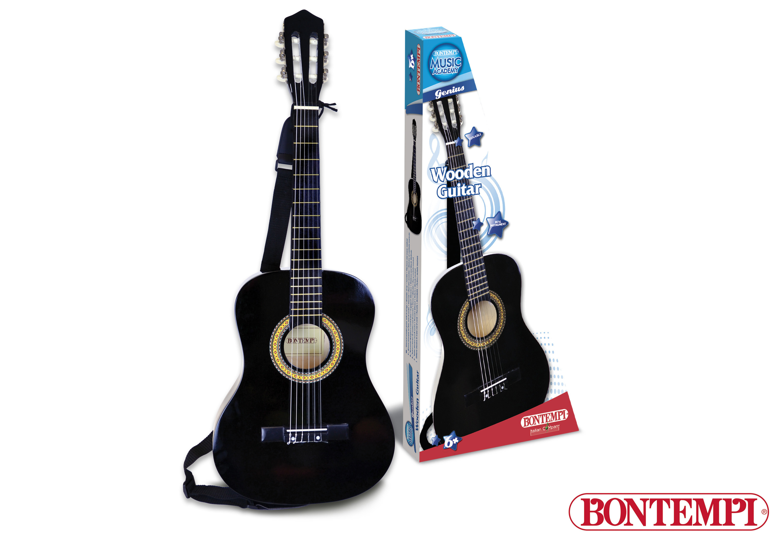 Bontempi Klasická černá dřevěná kytara se 6 strunami • Nastavitelná • Realistický zvuk • Trsátko • Popruh na rameno