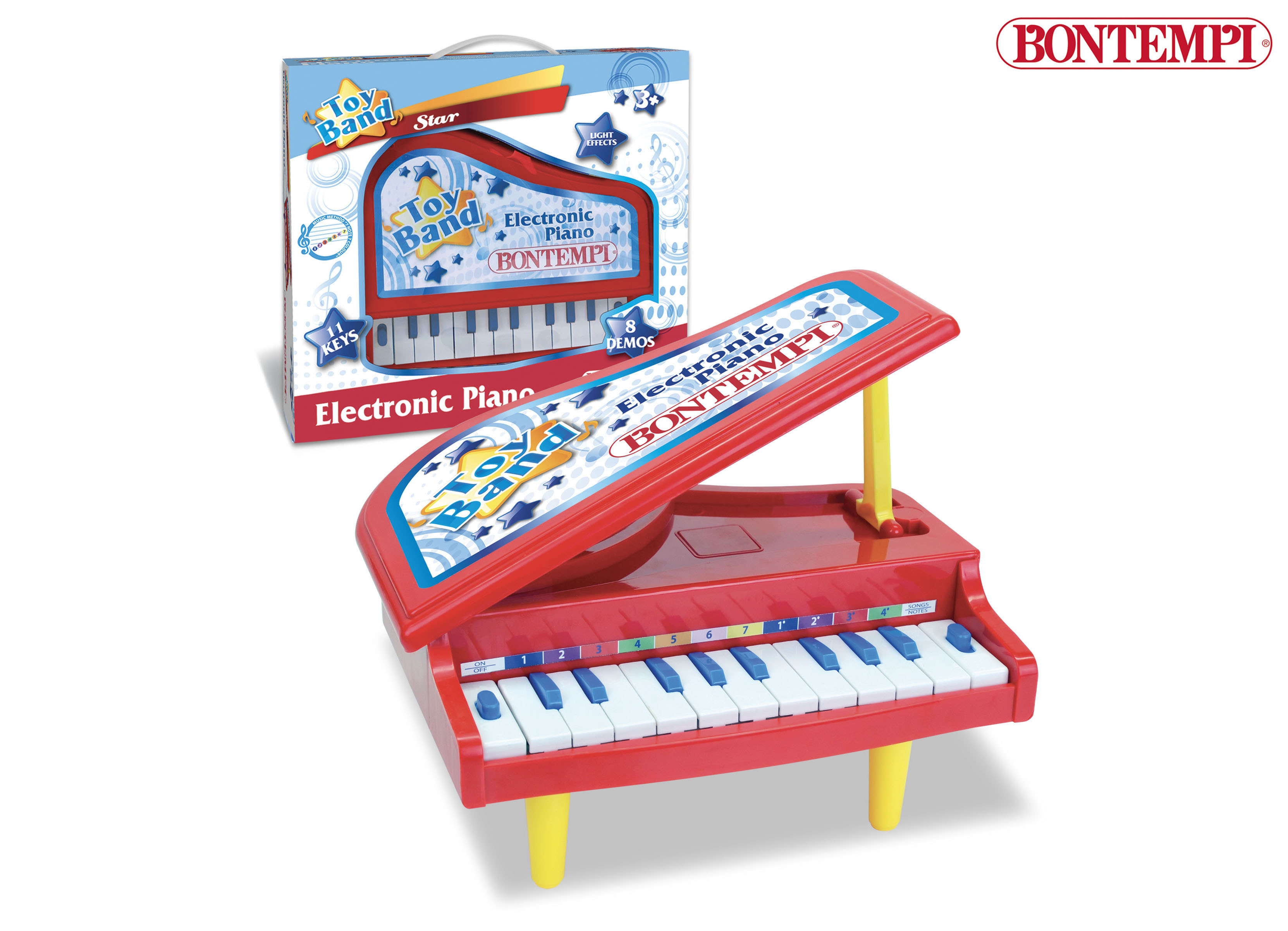 Bontempi Elektronické piano ? 11 kláves ? 8 demosongů ? Odnímatelné nožičky ? Napájení: 3 baterie R6 / AA 1,5V (nejsou součástí balení) ? Rozměr 215x180x190 mm