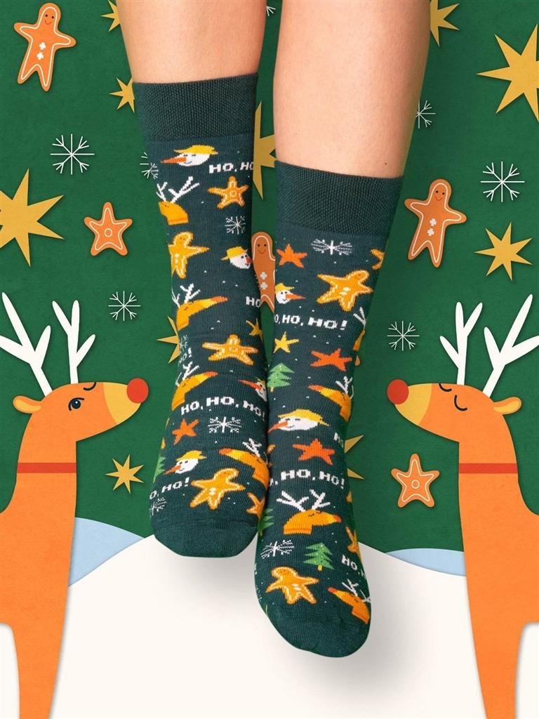 Bałwan, choinka, śnieżynki, pierwsza gwiazdka, a do tego jeszcze lukrowane pierniki! Kwintesencja grudniowego klimatu, na który czekamy z utęsknieniem przez cały rok. Skarpety świąteczne PIERNIKI w choinkowym kolorze to idealny pomysł na prezent z okazji Bożego Narodzenia. Wypełnij je łakociami, zawieś nocą przy kominku i czekaj na reakcję bliskiej osoby - niech się dzieje magia! Dla waćpani i waćpana Skład: 80% najwyższej jakości bawełna czesana, 17% poliamid (dodaje wytrzymałości), 3% elastan (skarpetka lepiej dopasowuje się do stopy) Nieuciskający ściągacz i komfortowy płaski szew na palcach Idealne skarpetki na drobny prezent bożonarodzeniowy pod choinkę Wyprodukowano w Polsce Prać zawsze na lewej stronie w temperaturze maks. 40 C, nie prasować.