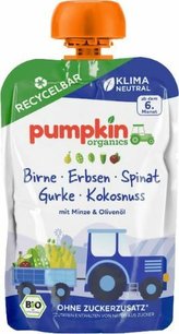 Pumpkin Organics Zeleninové pyré z hrášku a špenátu s hruškou, okurkou, mátou BIO 100 g