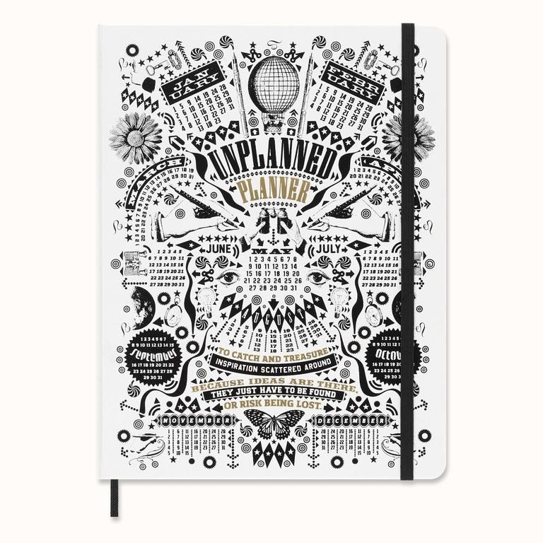 Nedatovaný diář z limitované edice od italského ilustrátora Lorenza Petrantoniho s vášní pro 19. století. Petrantoni hledá zapomenuté obrázky a nápisy, které používá ve svých fantastických ručních grafikách. Jeho současné koláže oslavují okamžiky nečekané inspirace. Diář má pevnou, ve hřbetu šitou vazbu v kartonových deskách. Obepíná ho pružná páska proti samovolnému otevírání. Obsahuje praktickou vnitřní kapsu, textilní záložku, leták s historií Moleskine a tematické samolepky. Sada samolepek obsahuje nejen grafiku, ale také samolepky s letopočtem k nalepení na hřbet plánovače a dvanáct samolepek s jednotlivými měsíci k přizpůsobení dělicích stránek. Předsádka diáře zdobena černým sítotiskem se zlatým reliéfním tiskem.