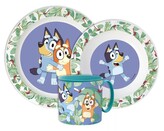 Plastový jídelní set BLUEY tropical s hrnkem modrý