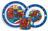Plastový jídelní set SPIDERMAN nad věžákem s hrnkem modrý