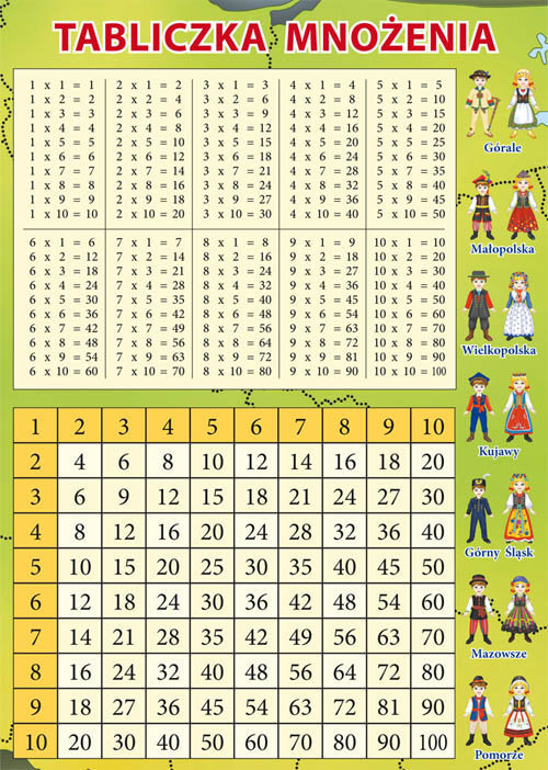 Tabliczka mnożenia + plan lekcji i mapa Polski (polsky)