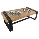 Misky Dog Fantasy nerez s dřevěným stojánkem, železná konstrukce 2x840ml
