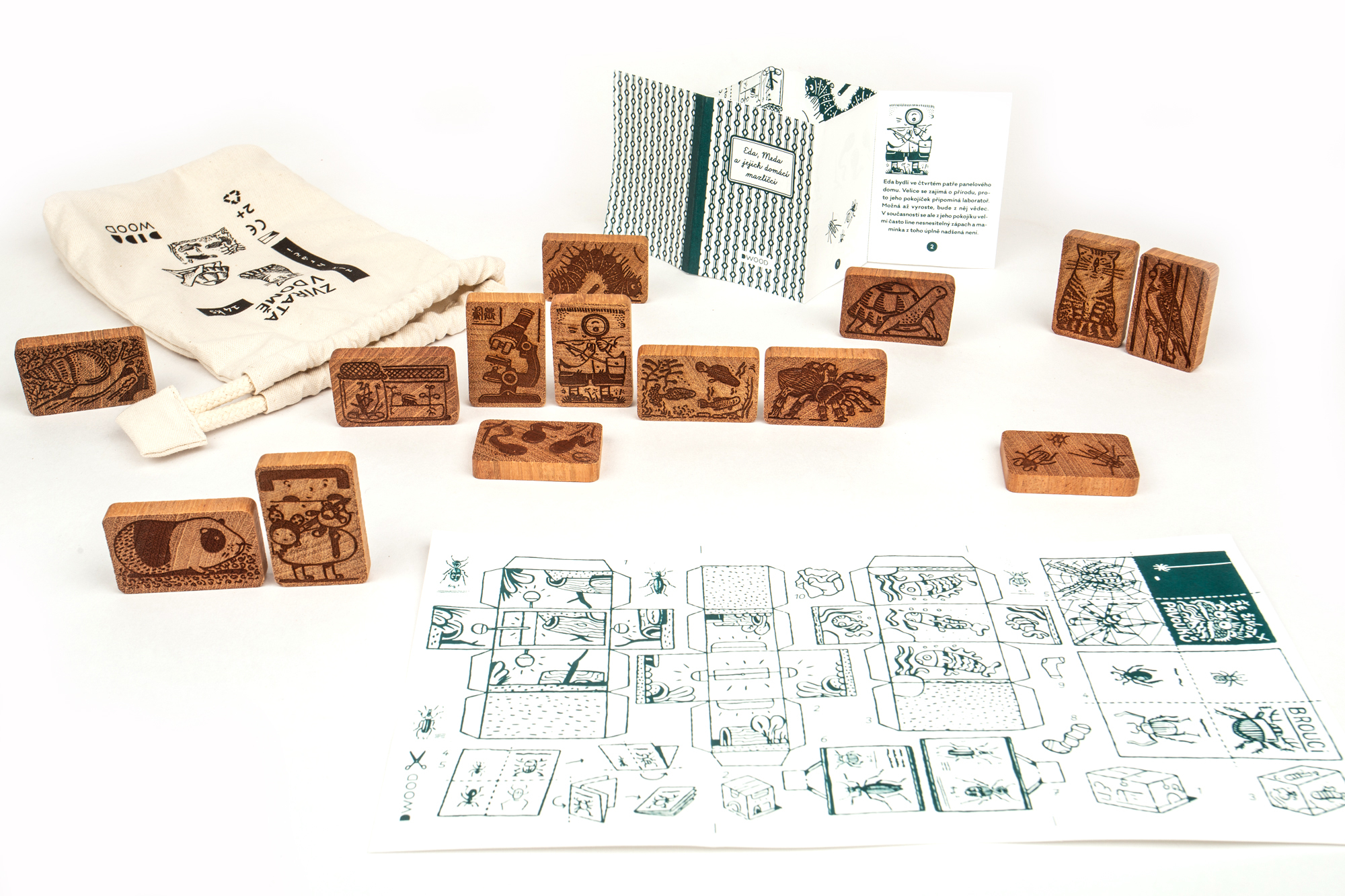 Rozměr dílku: domino 5,8x3,8x1cm, miniknížka 7,5x10cm, vystřihovánka 17x33,5cm
