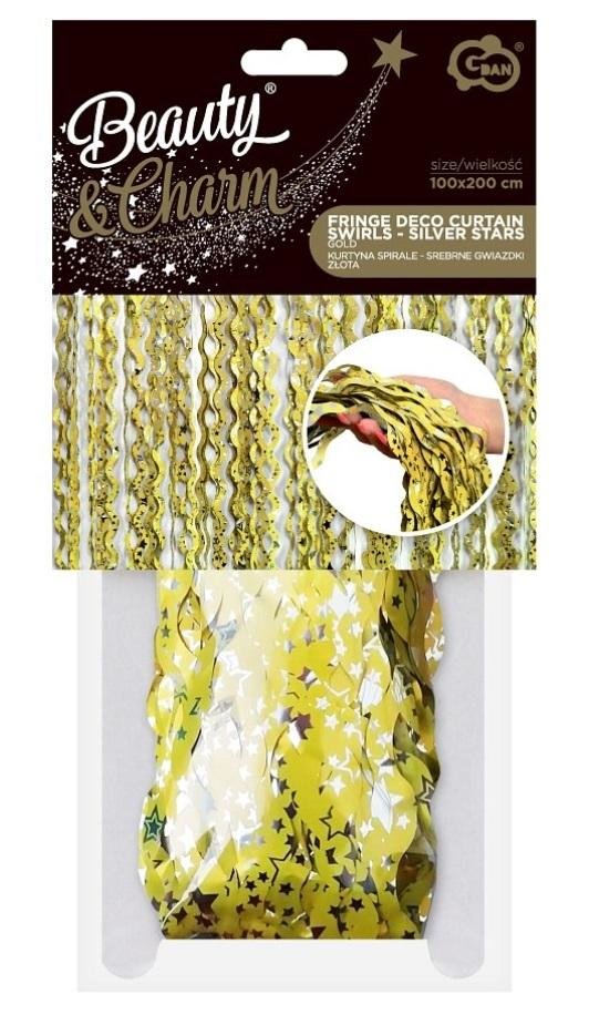 Kurtyna B&C złota spirale srebrne gwiazdki 100x200