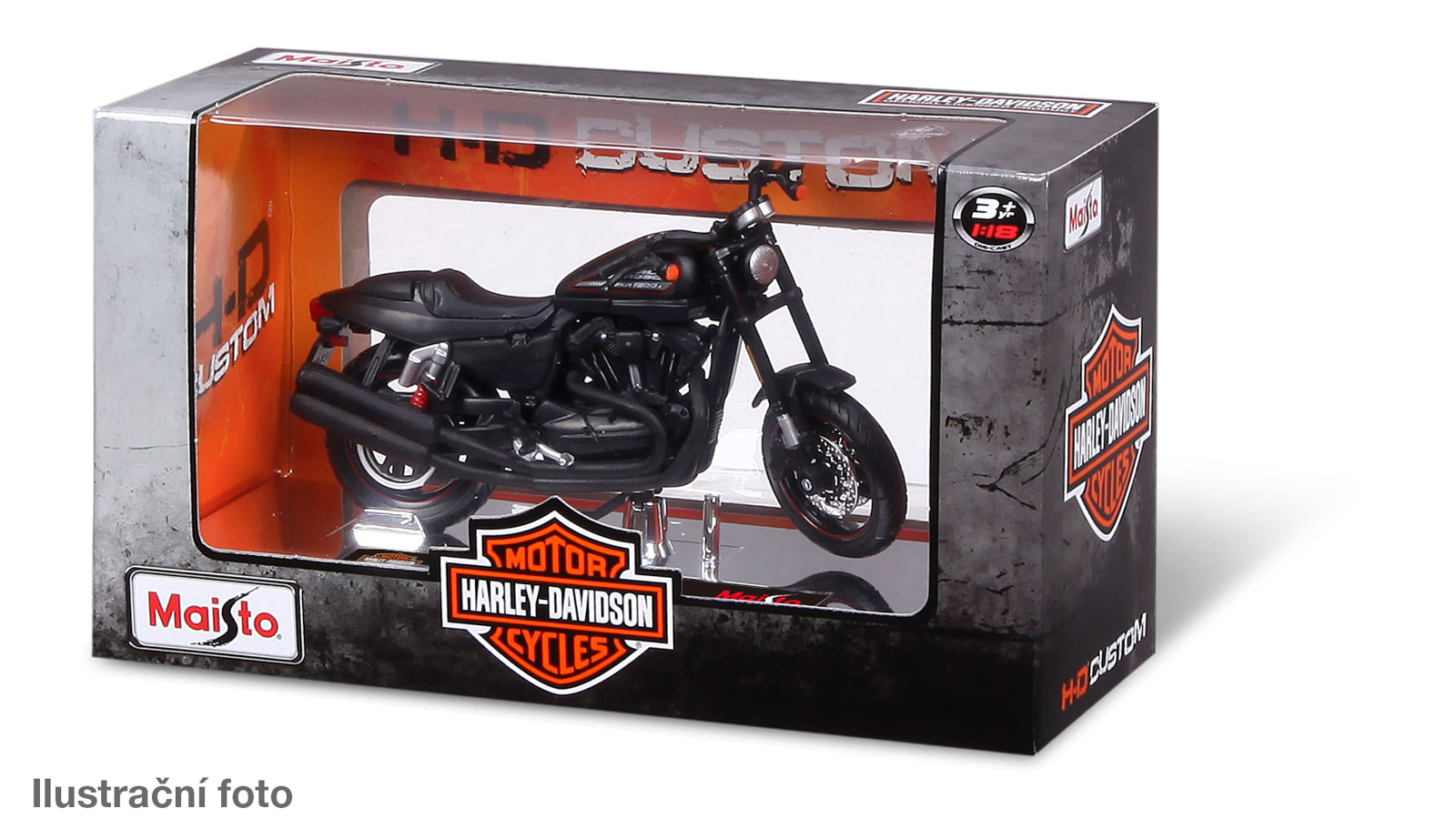 Harley-Davidson Motorcycles. Kovové modely motocyklů Harley Davidson v modelovém měřítku 1:18 mají u svých fanoušků velkou oblíbenost pro jejich dokonalé provedení. Motocykly mají otáčivá řidítka a odpruženou zadní nápravu. Jsou usazeny na atraktivním podstavci. Varianty k dispozici: Harley-Davidson: XR 1200X, 1997 FXDL Dyna Low Rider, 2012 XL 1200V Seventy-Two, 2016 Breakout, 1984 FXST Softail, 2009 FXDFSE CVO Fat Bob, 2002 FXSTB Night Train, 2000 FLSTF Street Stalker, 1952 K Model, 2004 FXSTDSE 2 CVO, 2005 FLHTCUI Ultra Classic Electra Glide, 2012 XL 1200N Nighster, 2018 Forty Eight Special, 2007 XL 1200 N Nighster, 2013 XL 1200V SeventyTwo, 2002 FLTR Road Glide, 1977 FXS Low Rider, 2008 FLSTSB Cross Bones, 2018 Forty-Eight Special, 2018 CVO Road Glide, 2014 Sportster Iron 883, 2017 Road King Special, 2001 FXDWG Dyna Wide Glide, HD XR750. Nevhodné pro děti do 3 let. Assort je náhodný mix modelů. Výběr nelze ovlivnit. Věk: 3+