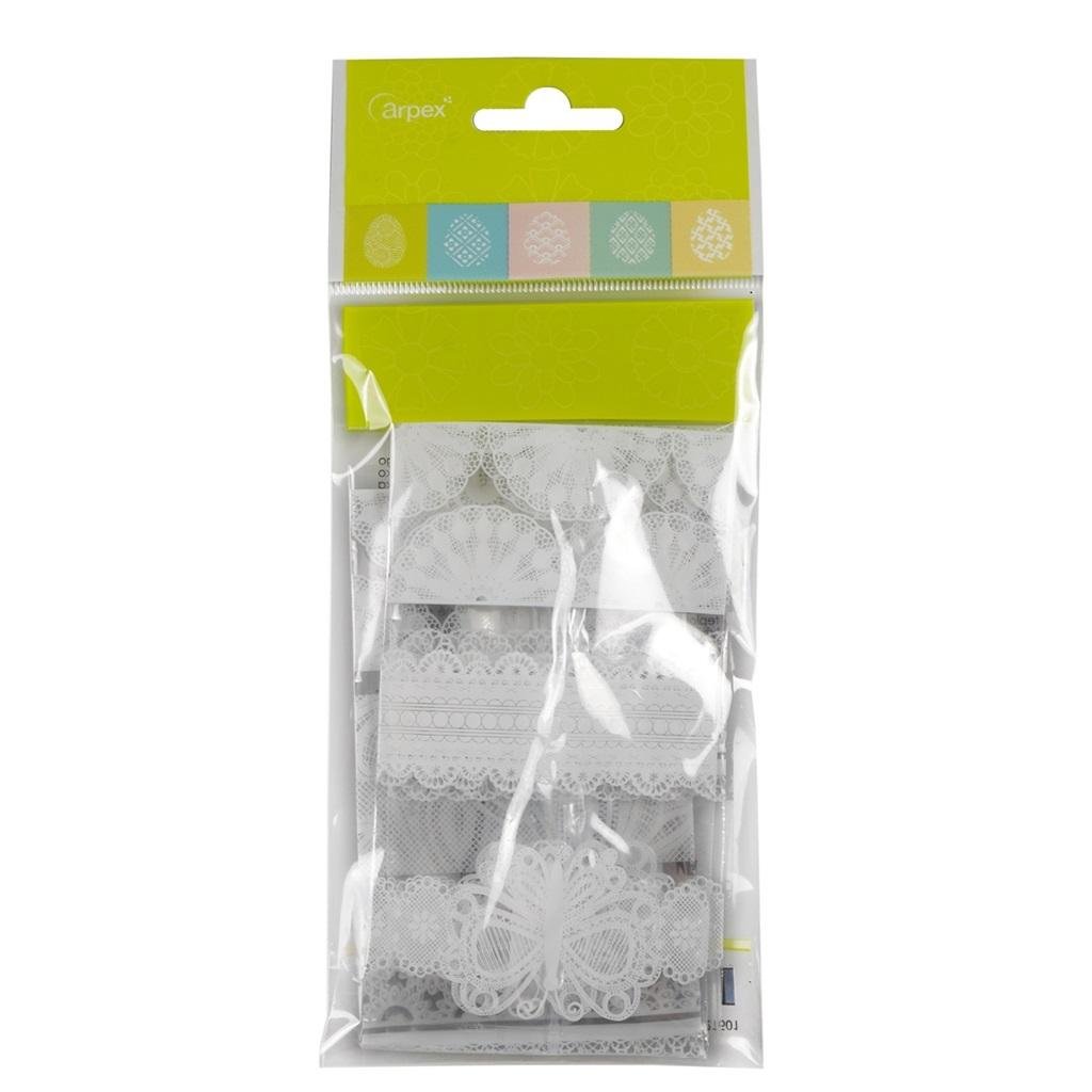 Koronkowe wzory owijek termokurczliwych - nadadzą jajkom tradycyjny wygląd. Idealne do błyskawicznego przygotowania wielkanocnych pisanek. Opakowanie zawiera 9 szt. owijek.