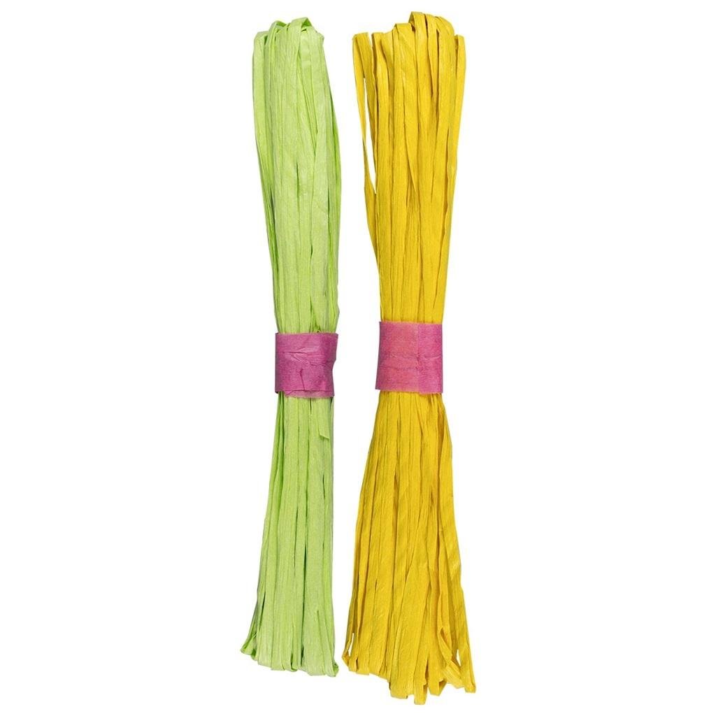 Kolorowa rafia dostępna w 2 wersjach kolorystycznych wysyłanych losowo: zielono-różowej i zielono-żółtej. Długość produktu: 11,5 m. 2 szt. w opakowaniu.