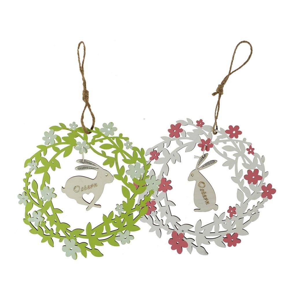 Drewniana dekoracja wielkanocna z zajączkiem - dostępna w dwóch wersjach kolorystycznych: zielonej i różowej wysyłanych losowo. Produkt pochodzi z odpowiedzialnego źródła. číst celé