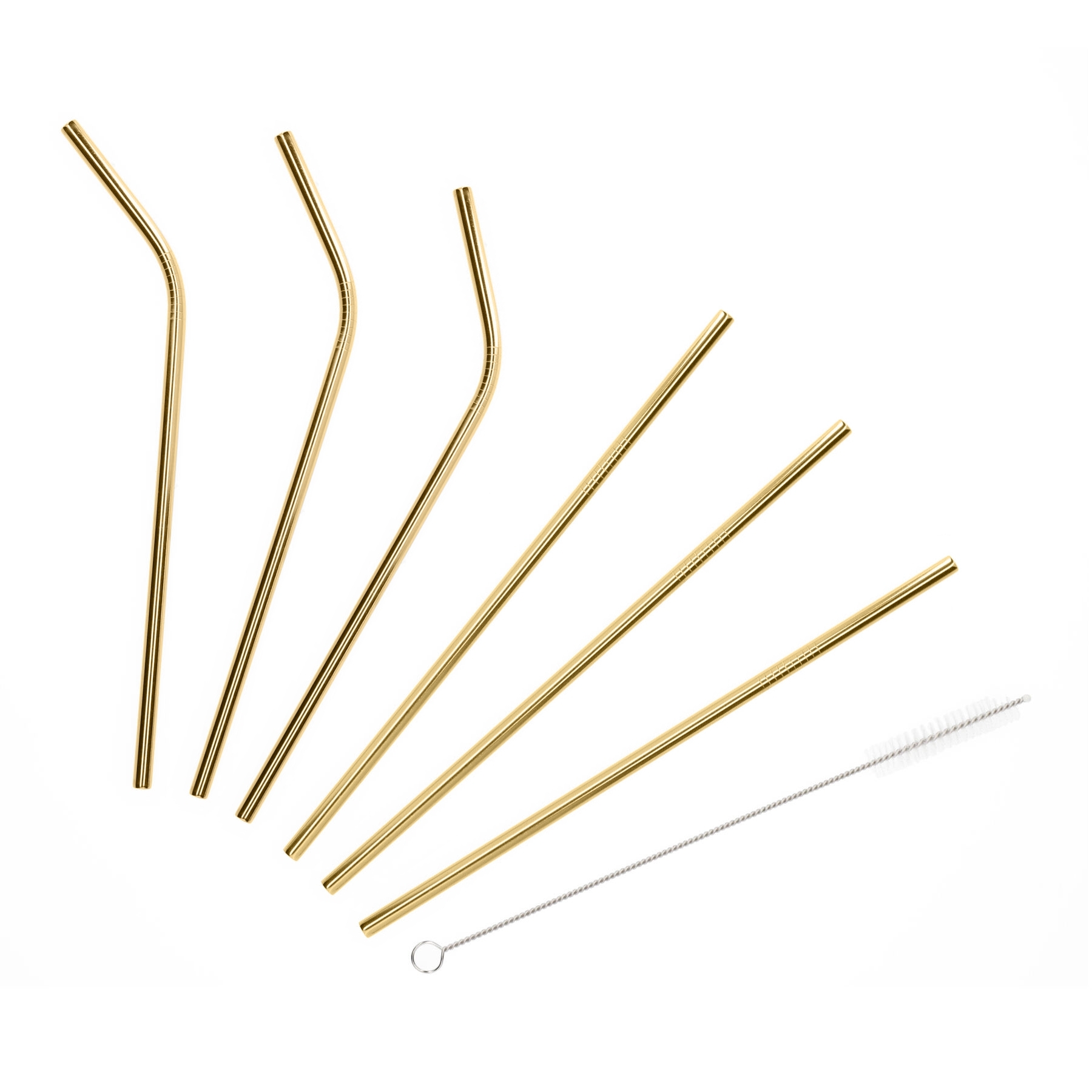 Sada 6 kusů kovových brček RIJO zlatá 25 cm + čistící tyčinka Homla