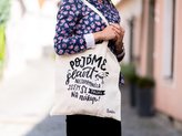 Chaukiss Plátěná taška "Pojďme slavit, nezapomněla jsem si tašku na nákup"