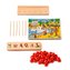Učíme se počítat do 10. Hledejte nakreslené položky na dřevěných destičkách a za každý nalezený předmět navlékněte korálek na připravený stojánek. Jako následná kontrola slouží zadní strana destičky, kde jsou odpovědi zobrazené čísly i tečkami. Hra stimuluje počítání a vnímání číselné řady, logické uvažování dětí, trpělivost i motoriku. Obsah sady: 3 dřevěné karty se 6 motivy (rozměr: 24 cm x 18 cm) 6 dřevěných karet s úkoly (rozměr: 24 cm x 6 cm 40 červených dřevěných plastových korálků 6 plastových tyčinek dřevěný stojan (rozměr: 24 cm x 8 cm x 1 cm) návod k použití Vhodné pro děti od 3 let.