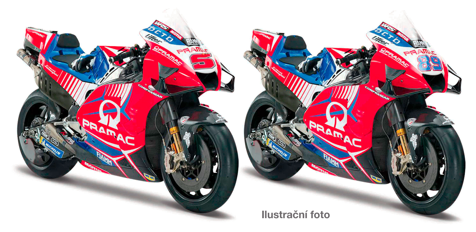 Ducati Pramac Racing 2021. Model motocyklu v měřítku 1:18 vyrobený z kovových a plastových dílů. Motocykl je zabalen v papírové krabičce s fóliovým průhledem. Otočná řídítka, odpružená zadní vidlice. Varianty: #5 Johan Zarco #89 Jorge Martin. Assort je náhodný mix modelů. Výběr nelze ovlivnit. Rozměr balení: 17,1x10,5x7cm. Věk: 3+