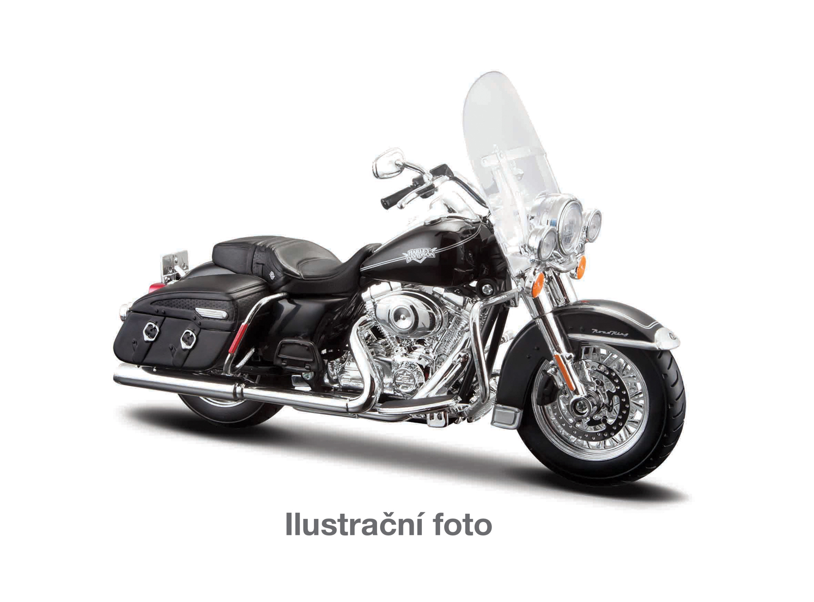 HARLEY DAVIDSON MOTORCYCLES, 2013 FLHRC Road King Classic. Modely motocyklů v měřítku 1:12 mají u svých fanoušků velkou oblíbenost pro jejich dokonalé provedení a především velikost cca. 16 cm. Motocykly mají otáčivá řidítka a odpruženou zadní nápravu. Baleno v krabičce. Nevhodné pro děti do 3...