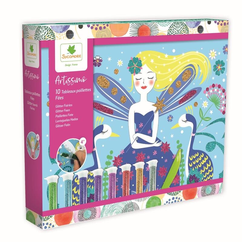 ARTISSIMO pískování glitrové Víly je skvělá kreativní sada, která rozzáří pokoj vašich dětí a podpoří jejich představivost i zručnost. Užijte si společné chvíle při tvoření nádherných obrázků, které budou zářit krásnými třpytkami a přinesou do každé místnosti radost a pohádkovou atmosféru.