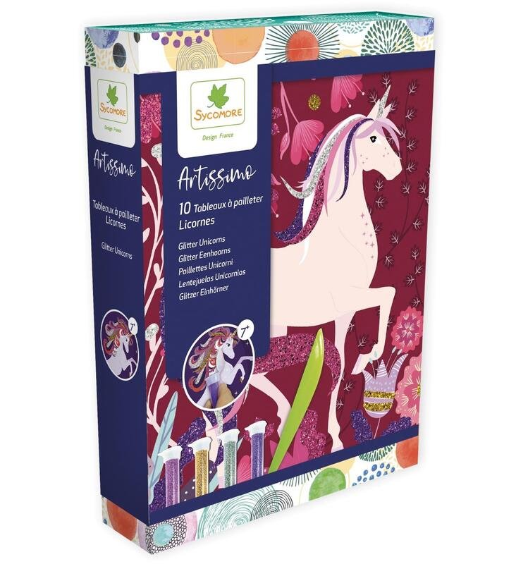Jednorožci se glitry jen třpytí a čekají až je vybarvíš a rozzáříš obrázky svůj pokojíček.Balení obsahu: 10 obrázků, 4 tubičky se třpytkami, špachtli a barevný návod.Baleno v luxusní pevné krabičce se zavíráním na magnet, která poslouží jako skvělý úložný box.Doporučeno pro děti od 7 let.Velikost balení: 16 x 22 x 4 cm.