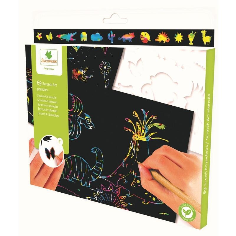 5 listů k vyškrabávání obrázků dle vlastní fantazie nebo podle šablon.Obsahuje: 5 listů k vyškrabávání o velikosti 17 x 21 cm, 4 listy šablon a dřevěný stylus na vyškrabávání.Rozměry balení: 23 x 21,5 x 1,5 cm.Vhodné pro děti od 5 let.