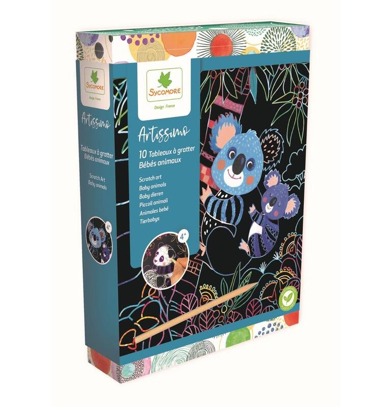 Zvířecí mláďátka v krásném barevném provedení, stačí jen vyškrabat a umělecký "Baby" obrázek je hotov.Balení obsahuje: 10 kusů škrabacích obrázků, dřevěné škrabátko ve tvaru tužky s hrotem a barevný návod.Baleno v luxusní pevné krabičce se zavíráním na magnet, která poslouží jako skvělý úložný box.Doporučeno pro děti od 4 let.Velikost balení: 16 x 22 x 4 cm.