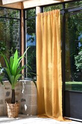 Dekorační záclona s kroužky režného vzhledu PALOMA mustard/hořčicová 140x260 cm (cena za 1 kus) France