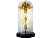 Dekorativní věčná růže ve skle se zlatým stonkem a LED osvětlením