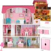 MDF dřevěný domeček pro panenky + nábytek 70cm růžový LED