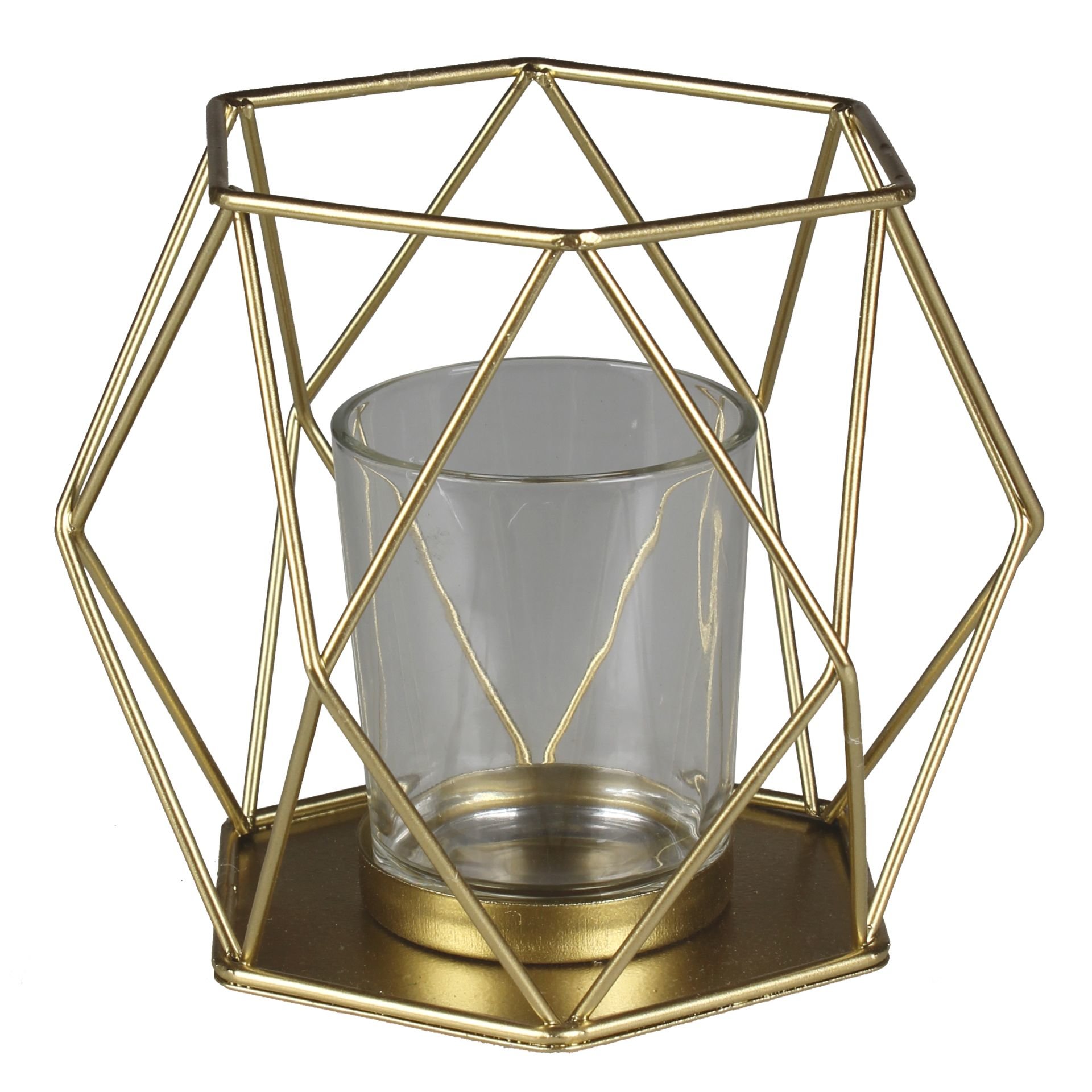 Kovový dekorační svícen na čajovou svíčku SERA zlatá 13x11,5x11 cm Mybesthome