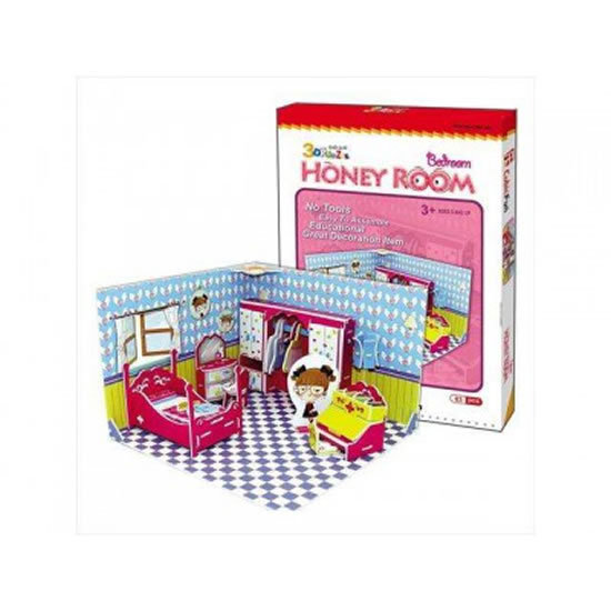 3D puzzle - stavebnice ze série Honey Room od CubicFun vyrobená ze speciálního materiálu - asi 3mm silné pěny potažené laminovaným potištěným papírem. Honey Room je série určená dětem, především holčičkám. Sestavit 3D puzzle je zábavné a jednoduché, u dětí rozvíjí motoriku a fantazii. Hotový model se pak může stát nevšední dekorací dětského pokoje. Dílky se k sobě sestavují pomocí návodu bez použití lepidla a nůžek - předražené dílky pouze jednoduše vylomíte z archu.