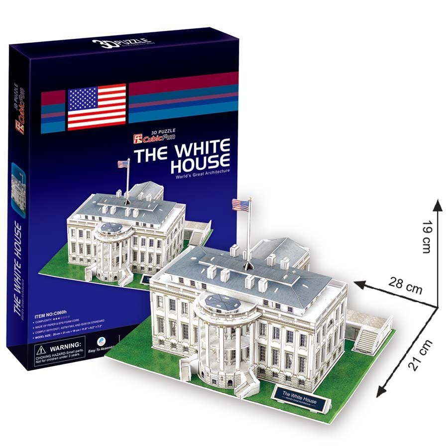 Tato 3D puzzle stavebnice ze série "Nejslavnější architektura světa" od známého výrobce CubicFun vás zavede přímo do bílé elegance amerického Bílého domu. Díky speciálním dílkům z asi 3mm silné pěny potažené laminovaným potištěným papírem si užijete snadné, ale zároveň zajímavé skládání detailního modelu. Díky návodu je sestavení jednoduché a nevyžaduje použití lepidla či nůžek - dílky jen jednoduše vylomíte z archů.