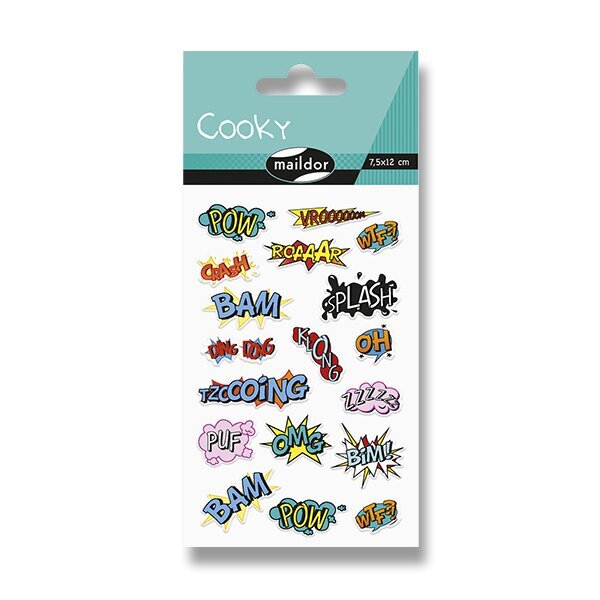 Samolepky Maildor 3D Cooky s motivy komiksů a s efektem 3D. Balení obsahuje 1 arch s 18 samolepkami.Rozměr balení 7,5 x 12 cm.