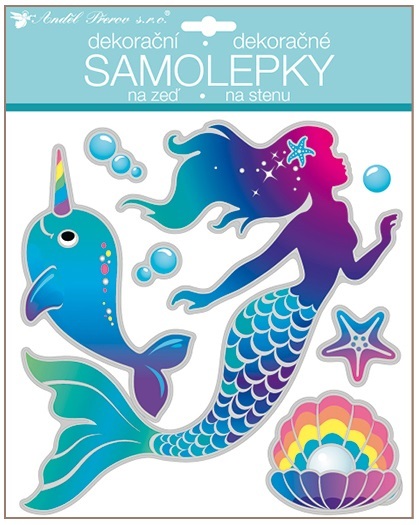 Samolepka za zeď mořská panna prostorová třpytivá 25 x 31 cm