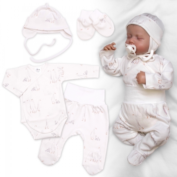 Sada oblečení pro miminko, 4D, bavlna, Husičky, smetanové, vel. 68; 68 (3-6m)