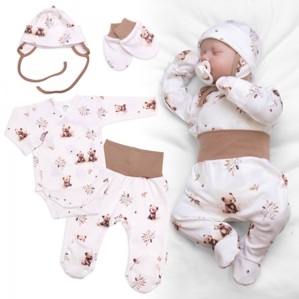 Sada oblečení pro miminko, 4D, bavlna, Roztomilý medvídek, ecru, vel. 62; 62 (2-3m)