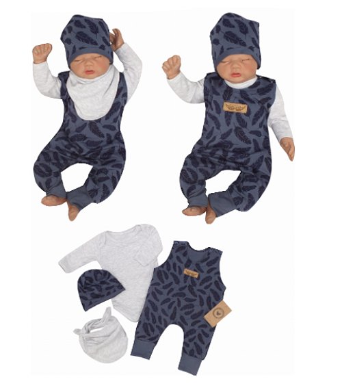 Z&Z 4-dílná soupravička body, láclové kalhoty, čepička + šátek - modrá
