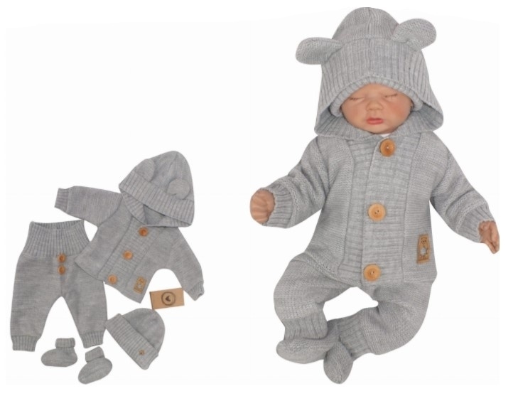 Z&Z 4-dílná kojenecká soupravička, kabátek, tepláčky, čepička a botičky - šedá, vel. 62; 62 (2-3m)