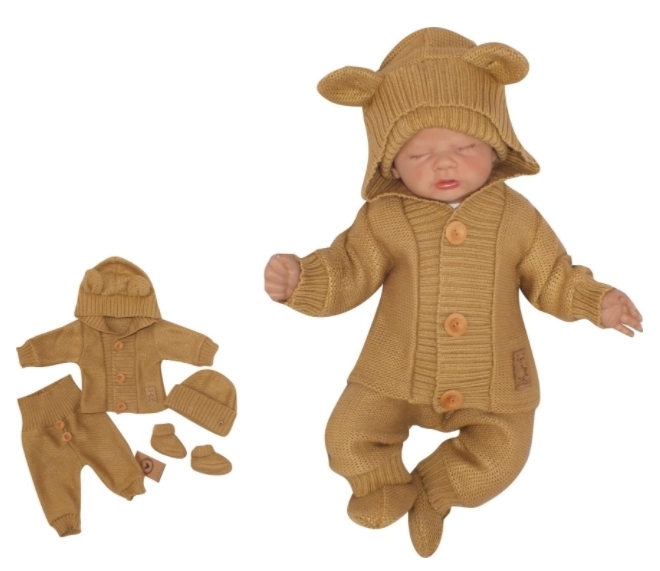 Z&Z 4-dílná kojenecká soupravička, kabátek, tepláčky, čepička a botičky - medová, vel. 68; 68 (3-6m)