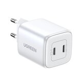 Szybka ładowarka GaN 2 x USB-C 45W QC PD Ugreen CD294 - biała