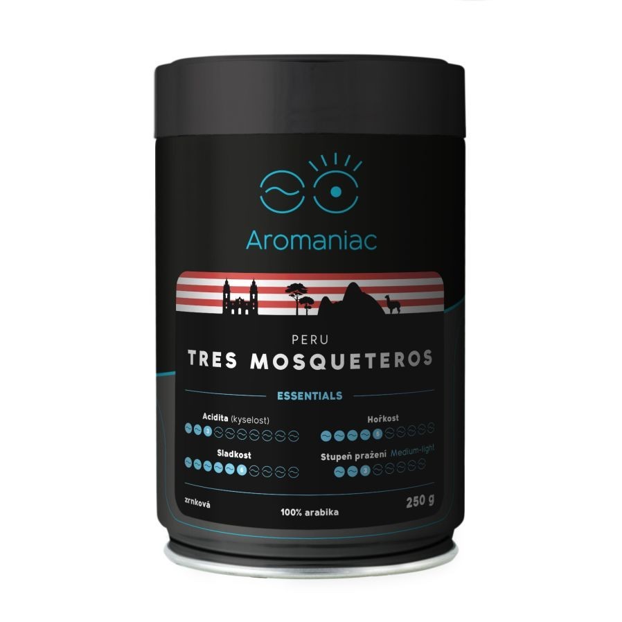 Káva Aromaniac Peru Tres Mosqueteros - zrnková, dóza. 250 g