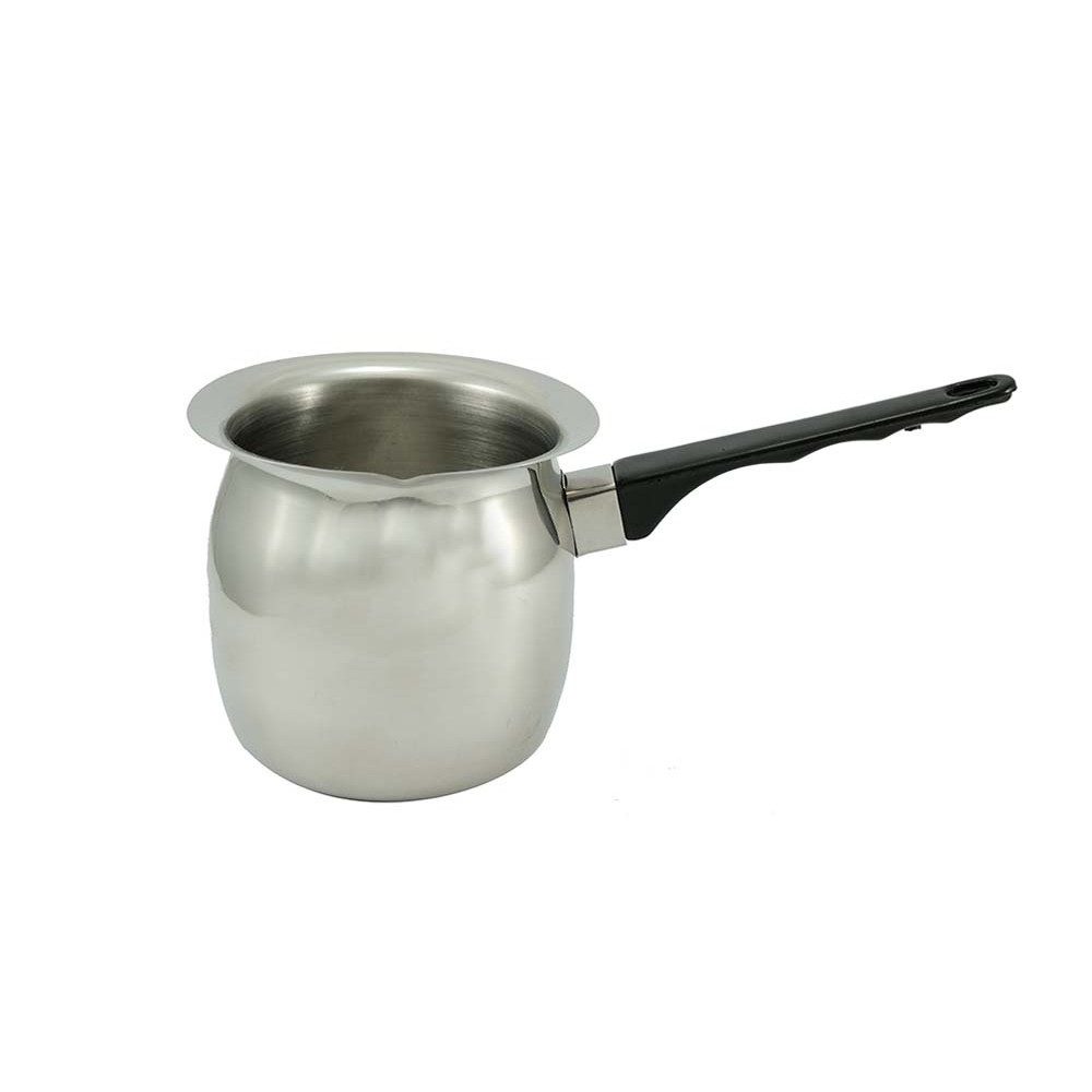 Nerezová džezva na kávu o objemu 500 ml s plastovou rukojetí a hubičkou pro snadnější nalévání.