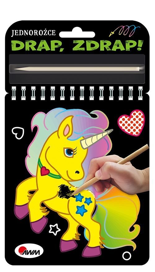 Książeczka ZDRAPYWANKA z RYSIKIEM, dzięki któremu powstaną kolorowe obrazki z jednorożcami.Do książeczki dołączono DREWNIANY RYSIK, którym zdrapuje się farbę z powierzchni stron.Książka wykonana jest z trwałego kartonu, a wykorzystane farby są całkowicie bezpieczne. Po zdrapaniu warstwy farby...