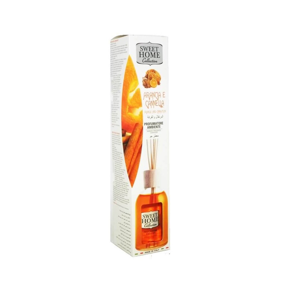 Sweet Home bytový Aroma difuzér - Pomeranč a Skořice - 30ml dokonalá intenzivní a přesto nedráždivá vůně bytových difuzérů Sweet Home, která je ideální do domácností jako například: předsíní, koupelen, ložnic, pracoven nebo obývacích pokojů. Tyto intenzivní a kvalitní aroma difuzéry italské výroby jsou také skvělé do společných prostor například na chodbách, vstupních halách, recepcích apod... Do skleněného flakonu difuzéru vložte přibalené bambusové tyčinky a vůně se začne pozvolna uvolňovat do prostoru. Intenzitu vůně ovlivníte počtem použitých tyčinek a pro maximální účinek je pravidelně otáčejte, čímž uvolníte více parfému do prostoru.Arancia e Cannella (Pomeranč a skořice)popis: Dokonale hřejivá sváteční vůně sladkého pomeranče a hřejivé skořice, která se Vám nikdy neomrzí.Hlava - pomeranč, bergamot, mandarinka a pomerančovník čínskýSrdce - skořice, kananga, hřebíček, muškátový oříšek a kardamomZáklad - tonka boby, myrha, santalové dřevo, cedrové dřevo a ovocné pižmoJakou velikost difuzéru zvolitK provonění malé místnosti jako předsíň, koupelna, kancelár a šatna doporučujeme difuzér objemu 100ml.Do střední místnosti jako ložnice, pracovna nebo obývací pokoj, vstupní hala zvolte difuzér objemu 250ml.Jak dlouho Vám budou luxusní difuzéry vonět ?30ml pro malé místnosti a stoly intenzivně voní cca 2 týdny100ml malá místnost do 10 m2 4 týdny250ml střední místnost až 20 m2 10 týdnů