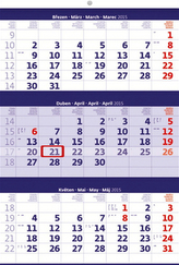 Tříměsíční modrý - nástěnný kalendář 2015