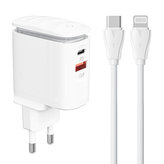 Nástěnná nabíječka MFi LDNIO A2318M, USB-C+USB, USB-C na Lightning 20W